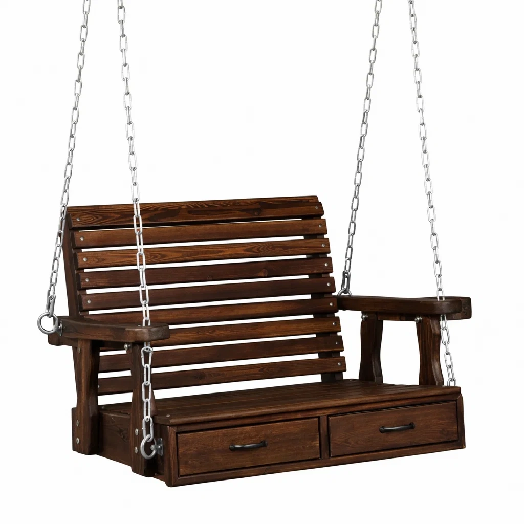 Balancelle de Porche en bois massif avec tiroirs et chaînes métalliques