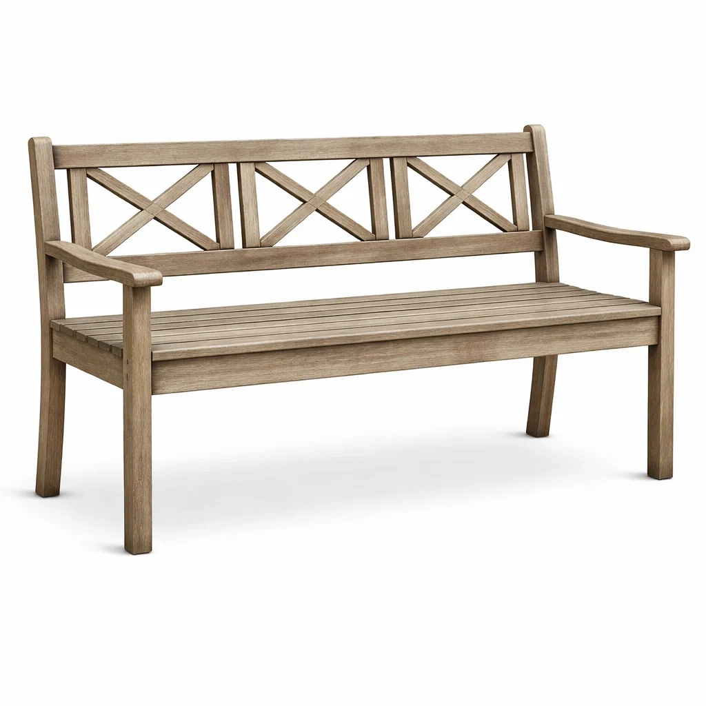 Banc de jardin en bois d'acacia avec dossier à motifs croisés